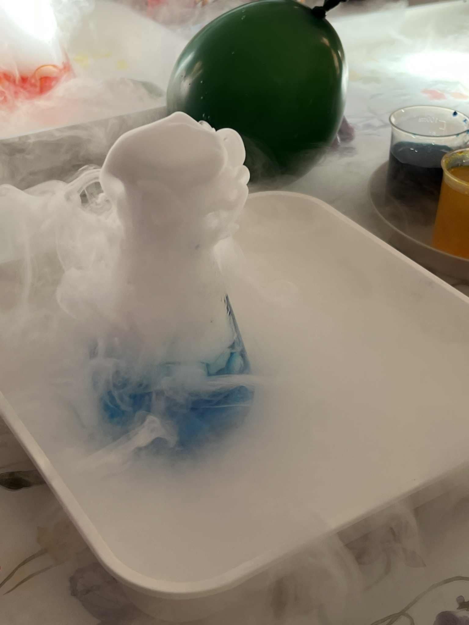 „Sausojo ledo magijos“ užsiėmime vaikai atliks įvairius įdomius eksperimentus. Dūmų ugnikalnis sukurs stebuklingą rūką, o burbulų ugnikalnis nustebins dideliais ir spalvingais burbulais, kylantiems į orą. Be to, vaikai galės stebėti, kaip sukurti putojančią vaivorykštę, kurios ryškios spalvos užburs visus. Tai nuostabi galimybė smalsiems mažiesiems atrasti mokslą per magiją ir kūrybą!